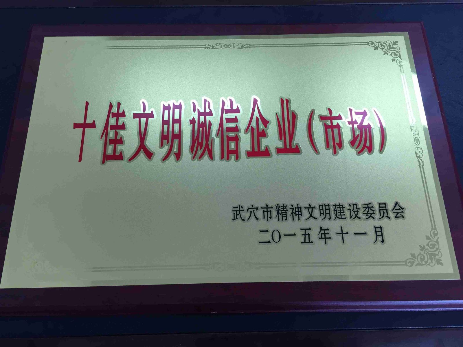 获“十佳文明诚信企业”荣誉称号